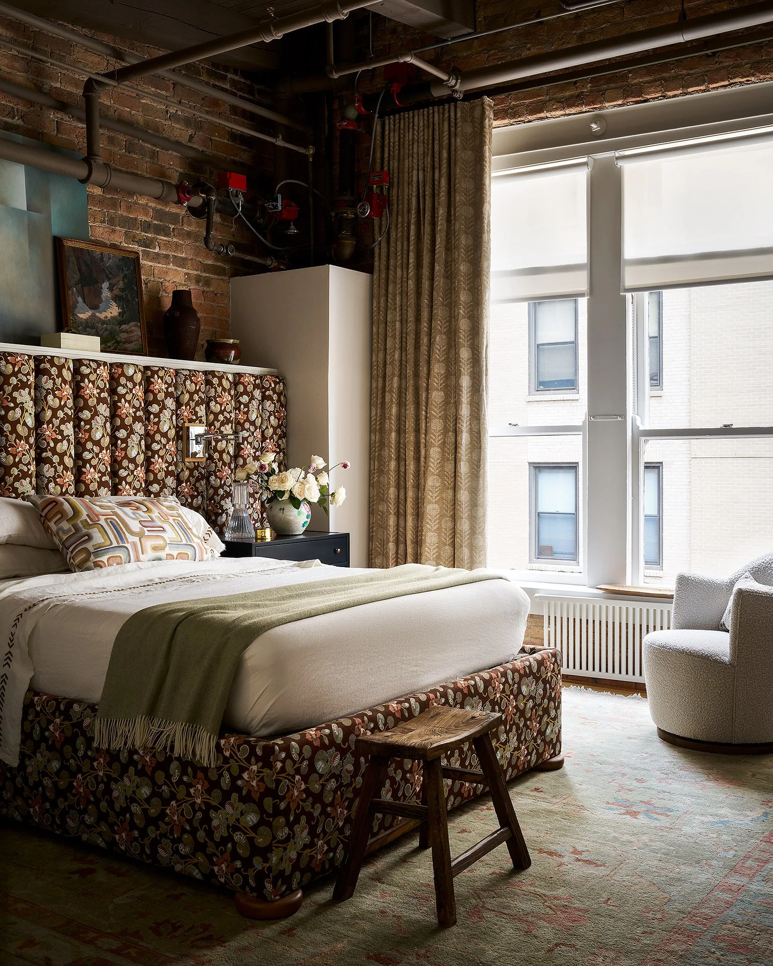 When you sell the family home in Oak Park and skip the usual Arizona or Florida retirement plan for a full-floor loft in Printers Row, you’re clearly not here to play it safe. The architecture? Slick and minimal. The finishes? Perfectly coordinated. But after a whirlwind build-out and placeholder furniture that felt out of place, the homeowners were ready to infuse their space with personality, panache and comfort. That’s where we came in. Instead of wiping the slate clean, however, we went room by room and created a plan that involved reinvigorating some of their storied pieces — grandma’s chair, a trip-to-Michigan side table, a bleached rug — while leveling up with fresh texture and pattern (and lighting that not only illuminates, it speaks). A cozy library got a tiger-print ottoman and overstuffed chairs; the main bedroom went moody and plush. Metals got mixed. Art got layered. The puppers, Margo, got a window-height daybed. The result: a loft that doesn’t just look like them — it is them. Unpredictable, collected and comfy. Margo approves.